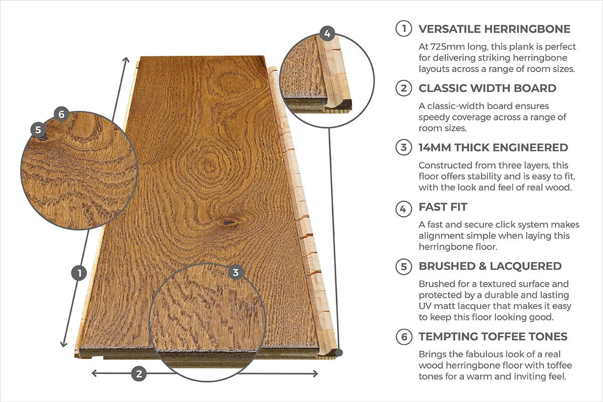 Home Choice Herringbone Engineered European Rustic Oak Flooring 14mm x 130mm Brown Sugar Lacquered